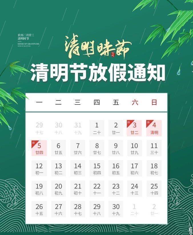 根据国务院办公厅通知精神及国家节假日放假规定,并结合实际情况,现将我园2021年清明节放假安排通知如下: