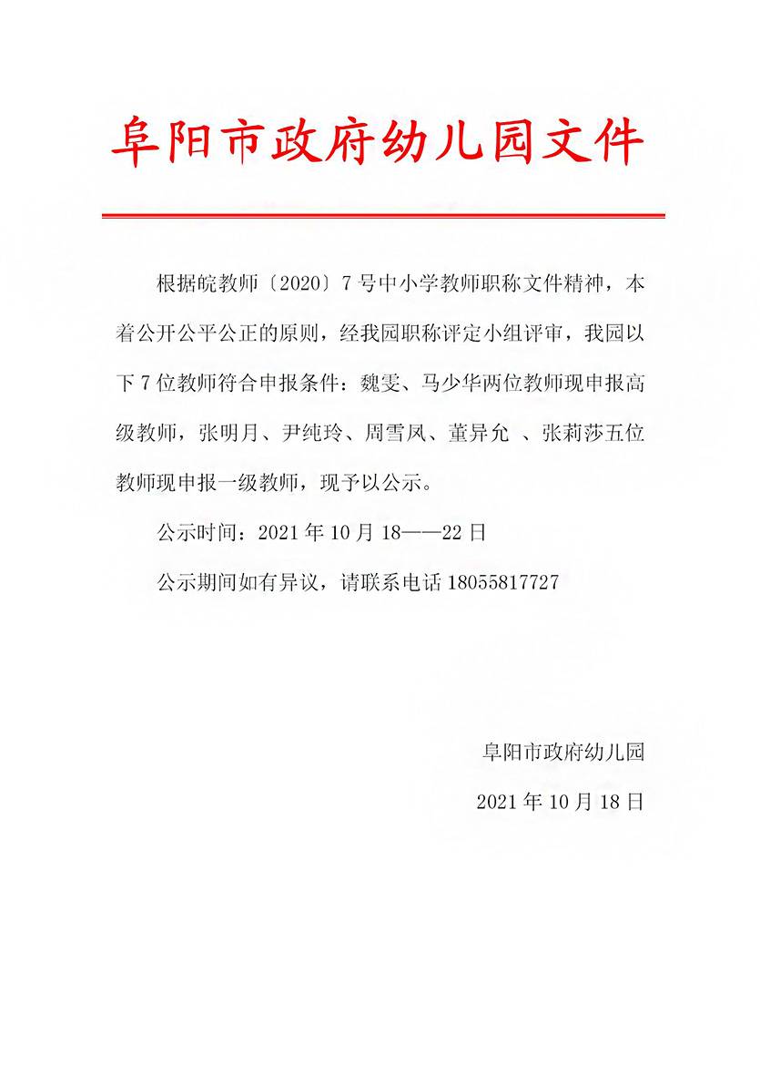职称评定申报公示