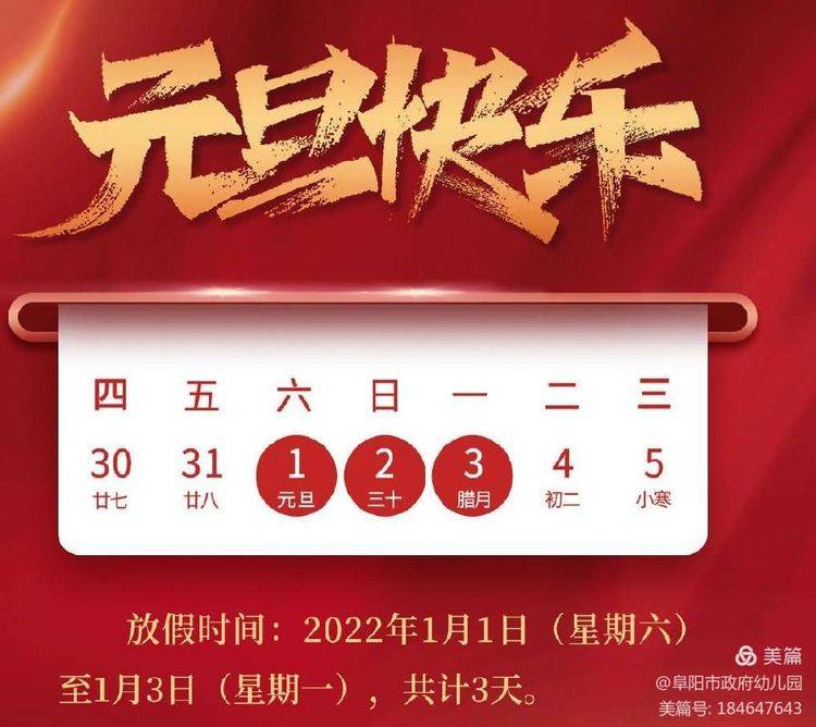 2022年元旦放假安排通知如下: