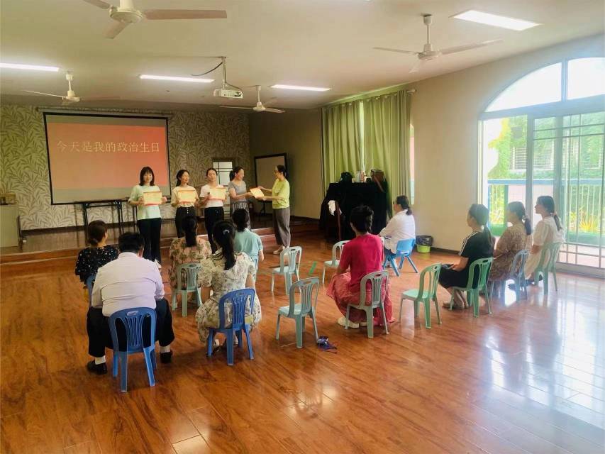 活动的最后,刘琴同志亲切的为7月过党员政治生日的四位同志:祝文君、唐雪、杨文静、周珣,颁发了生日贺卡并送上了祝福,大家一起重温了入党誓词,党员政治生日使我们牢记使命,不忘初心,始终奋进在党员活动的第一线感到骄傲和自豪。