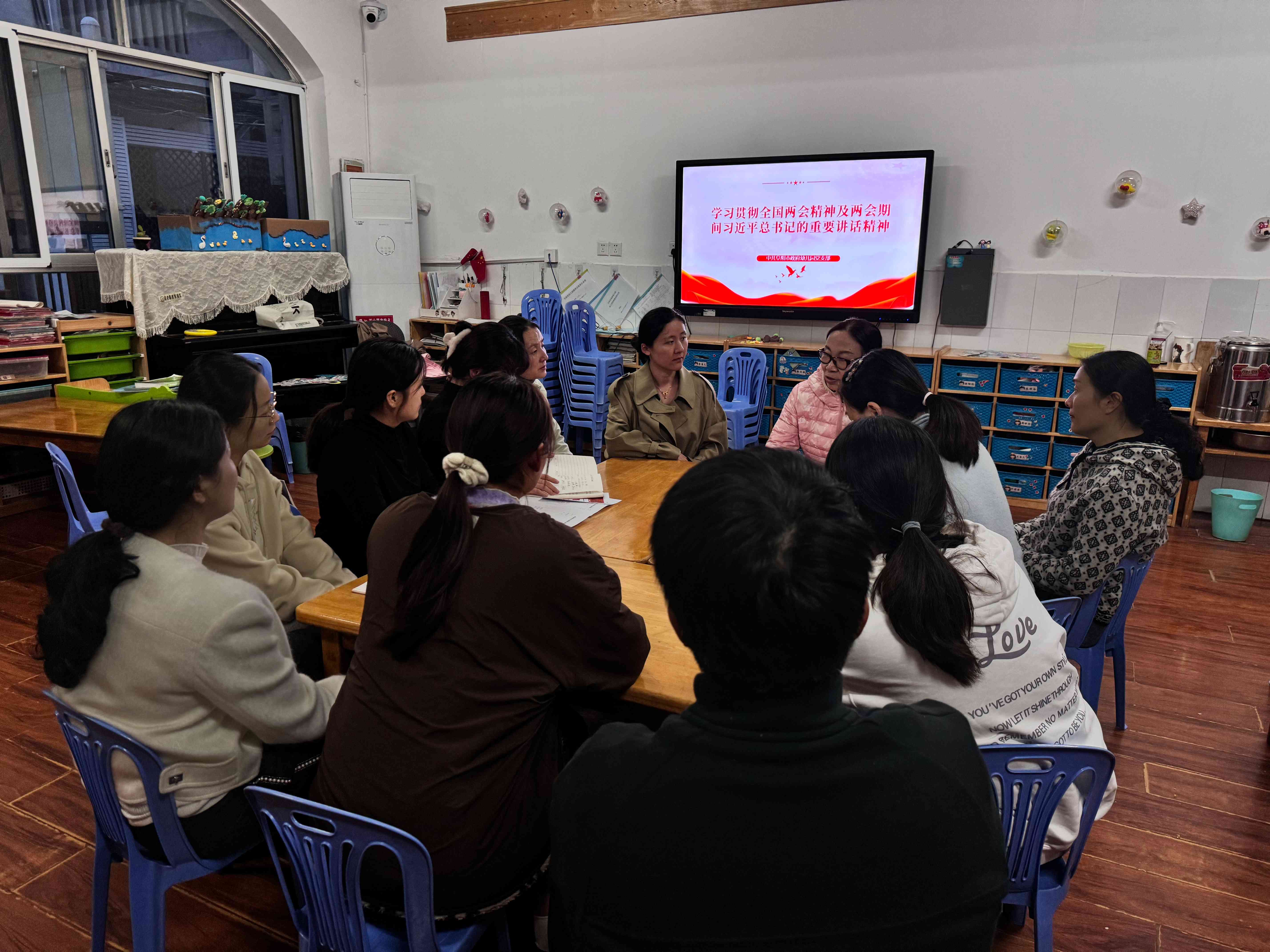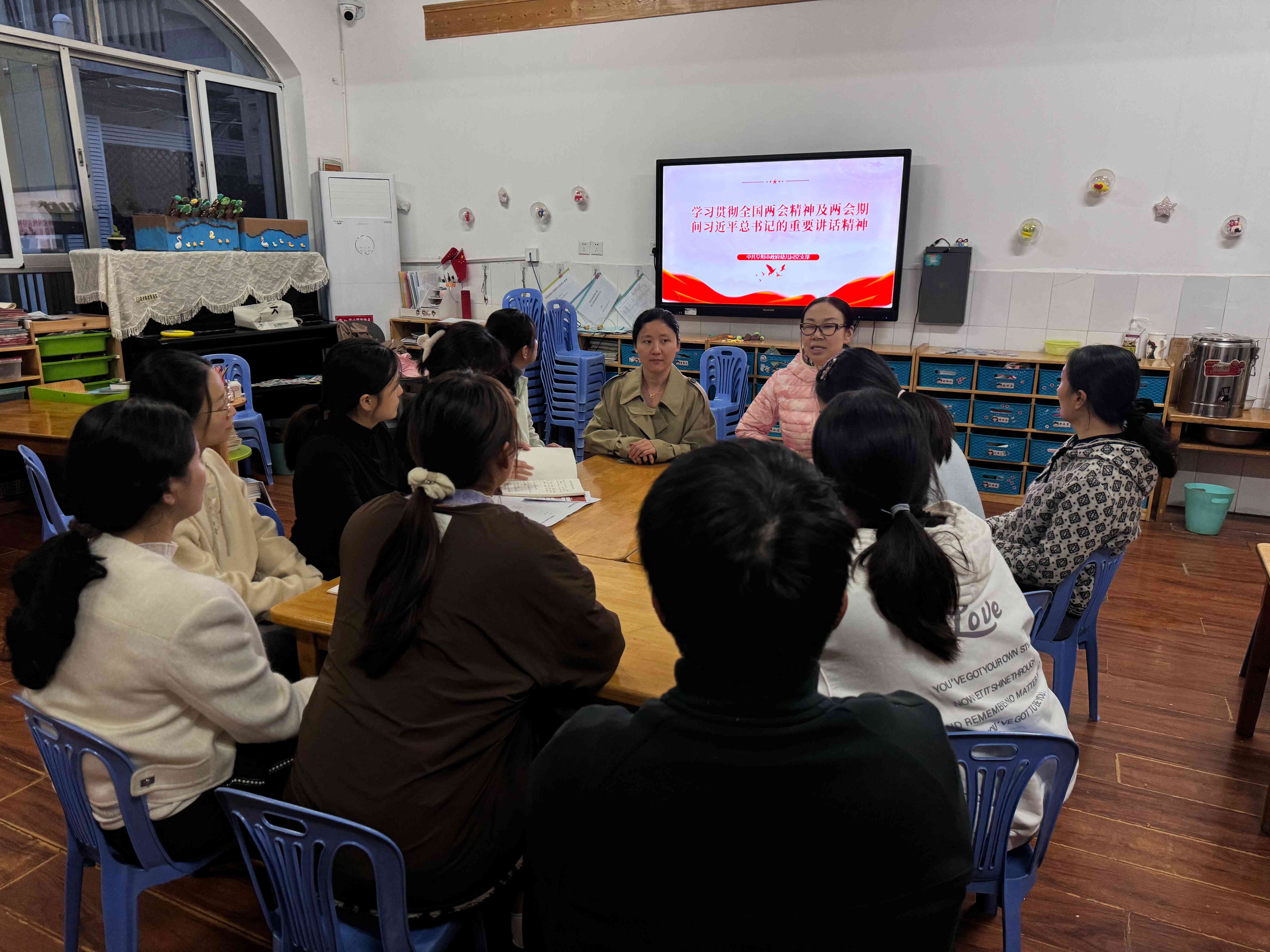 2024年3月4日至11日,十四届全国人大二次会议和全国政协十四届二次会议在北京胜利召开。习近平总书记与代表委员共商国是,多次发表重要讲话,立足党和国家事业发展全局,深刻阐明了事关中国式现代化建设的重大问题,进一步为以中国式现代化全面推进强国建设、民族复兴伟业指明了前进方向、提供了根本遵循。为深入贯彻学习2024年全国两会精神,紧跟时代前进步伐,以实际行动践行党的二十大精神,3月25日,我园党支部组织开展学习全国两会精神的党员大会。全体党员、入党积极分子参加活动,由园长刘琴同志、支部书记张敏同志主持。