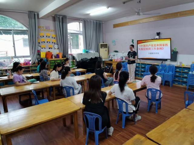 4月29日,永乐汇党支部开展了《中国共产党党和国家机关基层组织工作条例》(以下简称《条例》)专题学习交流。刘琴园长为党员同志们就《条例》的意义和特点等做了专题辅导讲座。