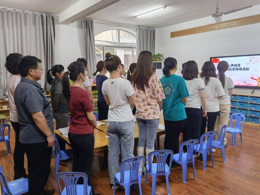 2021年9月10日上午,永乐汇党支部在幼儿园东一楼教室举办了一次别开生面的传唱活动,以大合唱、互动唱、红歌接唱的形式唱响了《没有共产党就没有新中国》、《团结就是力量》、《歌唱祖国》等十多首经典红歌,同志们激情满怀、歌声嘹亮、铿锵有力,整个活动室形成了歌的海洋,表达了党员老师们对党的热爱,对社会主义的热爱、对祖国的热爱。