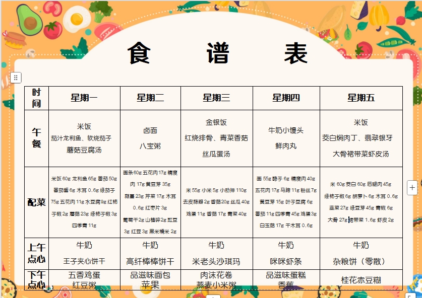永乐汇2025年4月7日至4月11日幼儿食谱公示