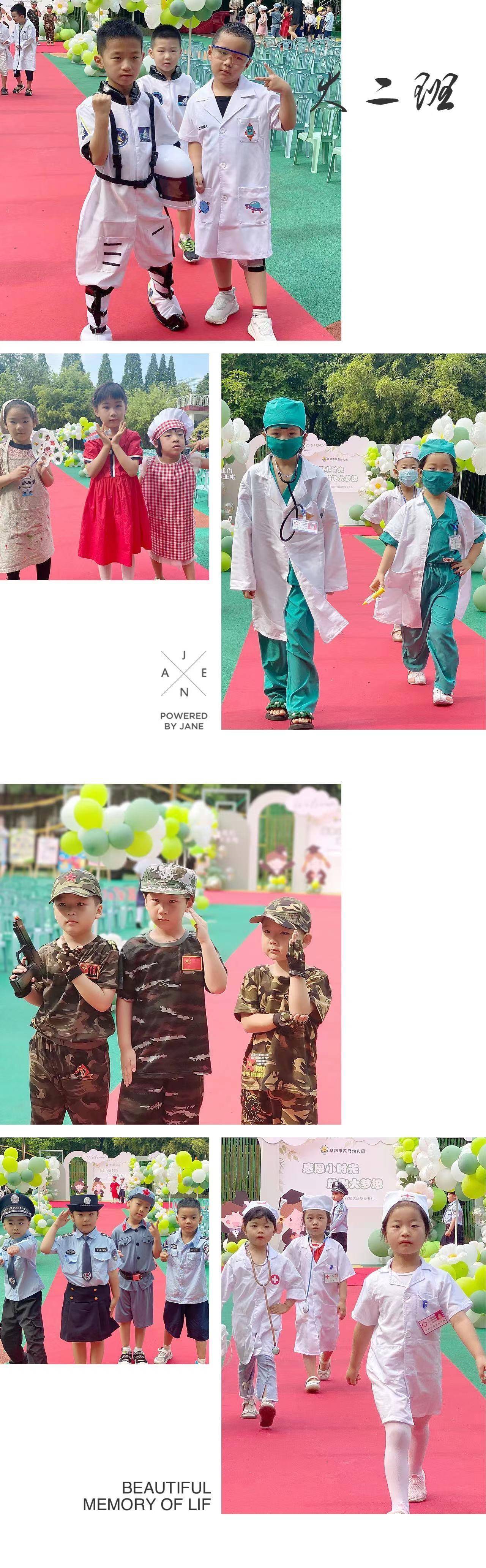 孩子们伴随着欢快的音乐,陆续穿过魔力时光隧道,跨出成长未来之门,小小少年带着梦想,“咻~”摇身一变,快看红毯上他们的身影:警察、医生、军人、教师、画家、消防员、工程师、科学家、考古家、甜品师、魔术师、芭蕾舞者…个个都摆出了最帅、最美的pose✌️他们英姿飒爽、他们光芒万丈!