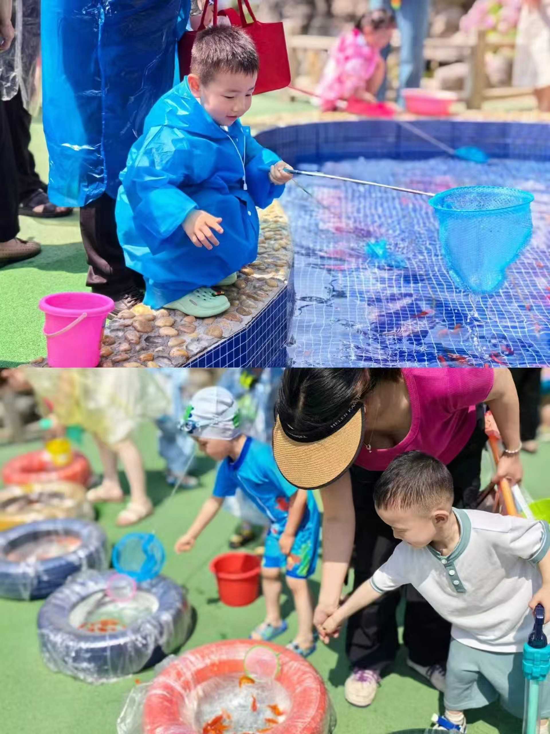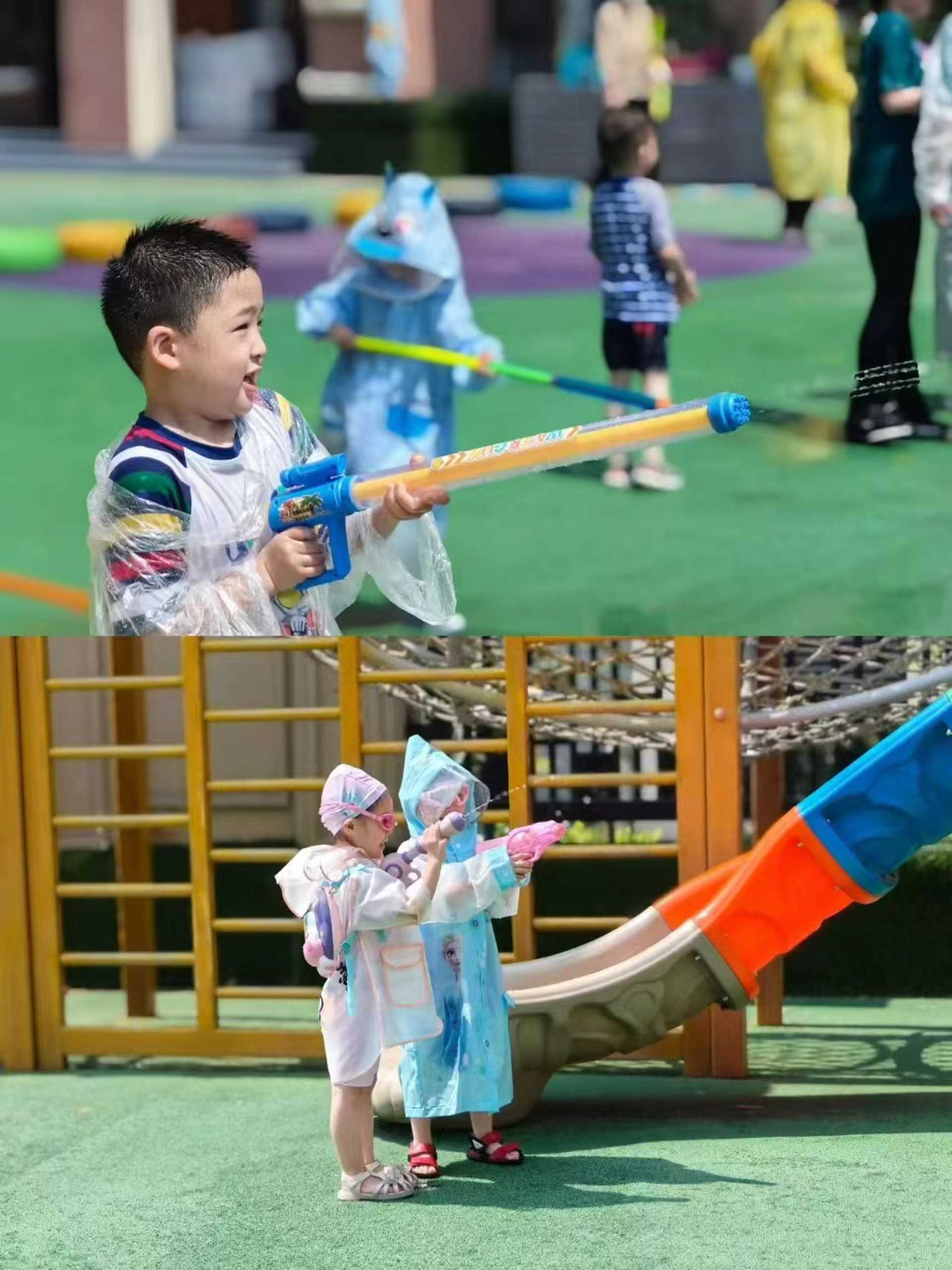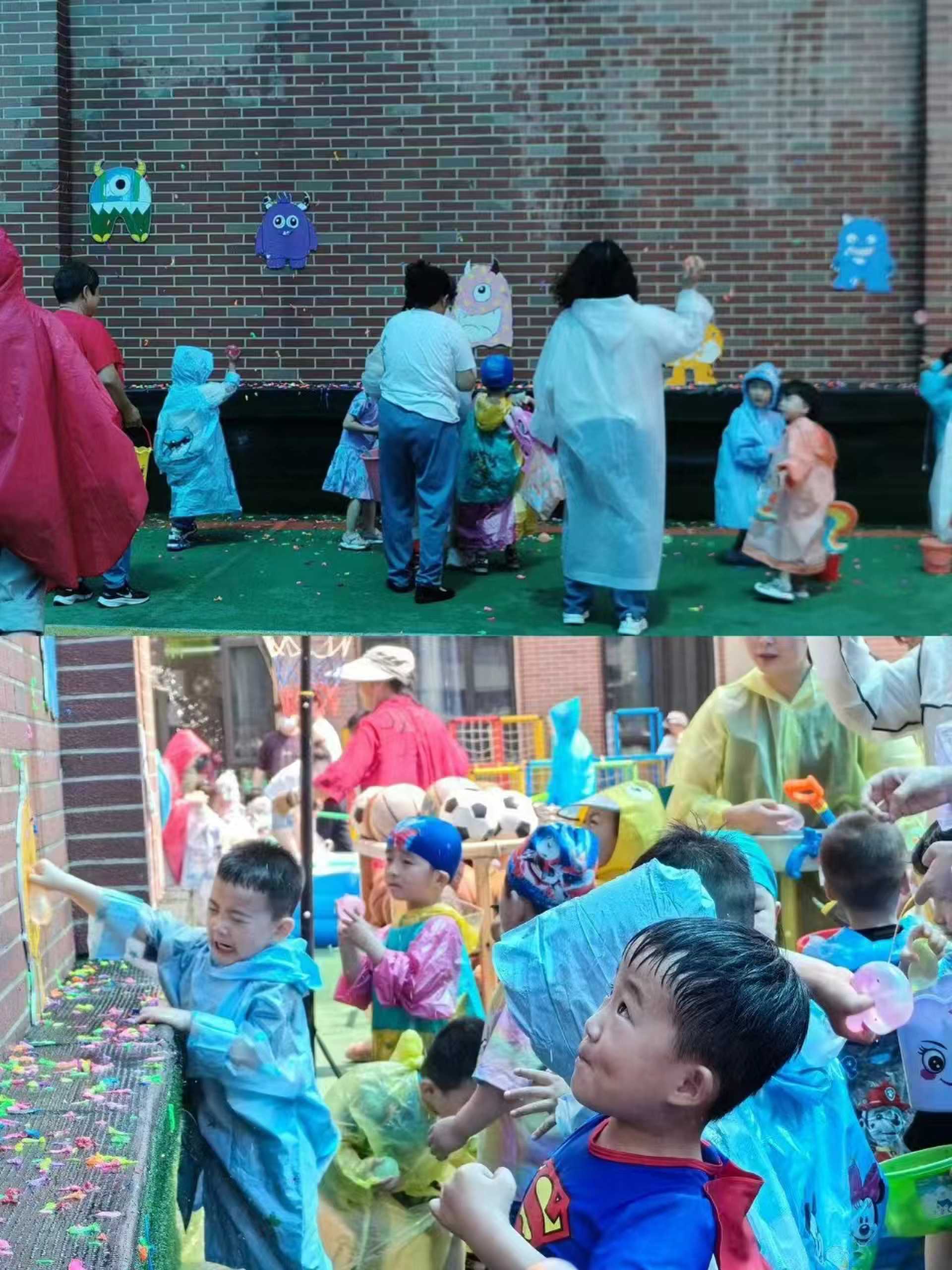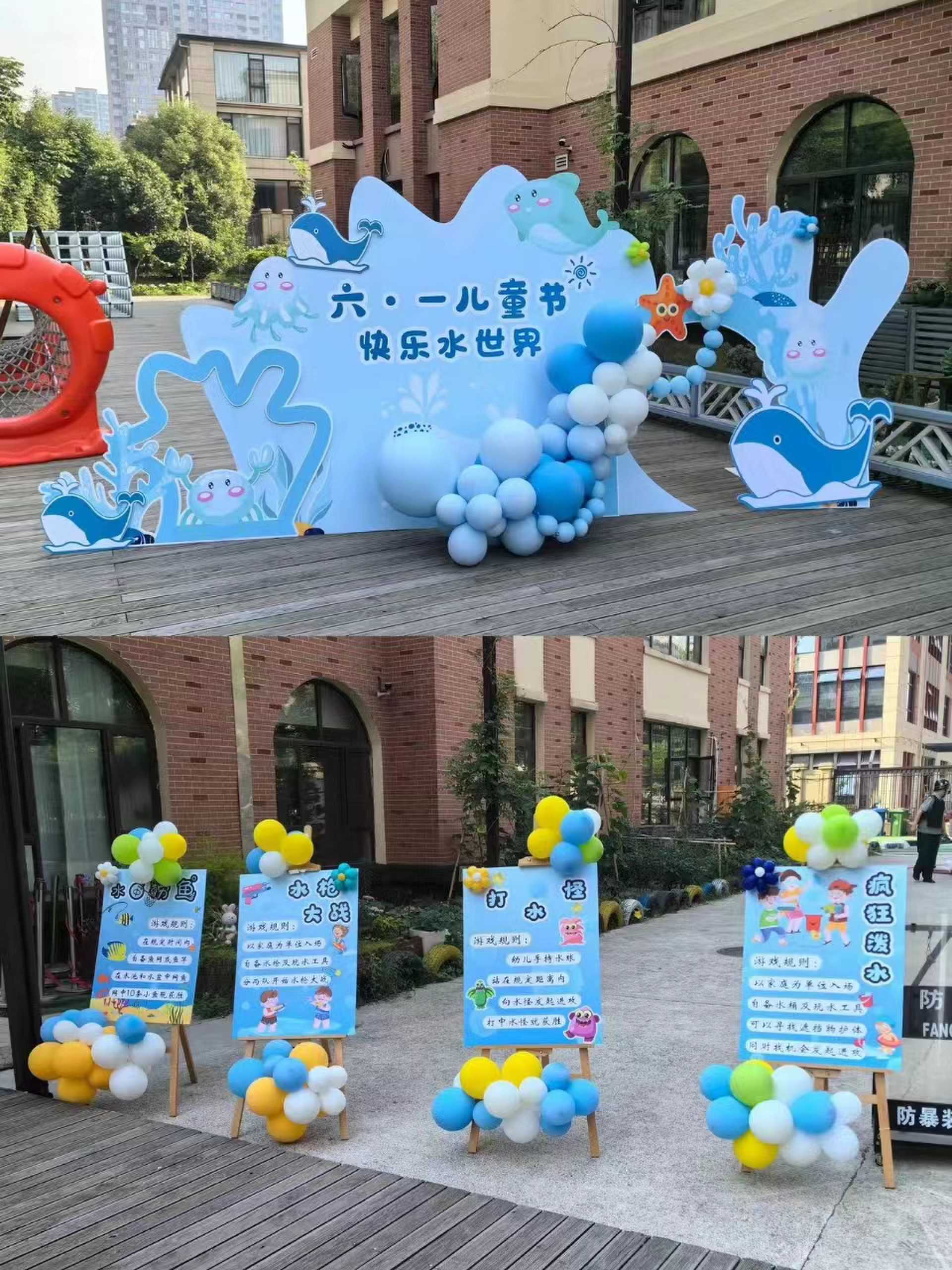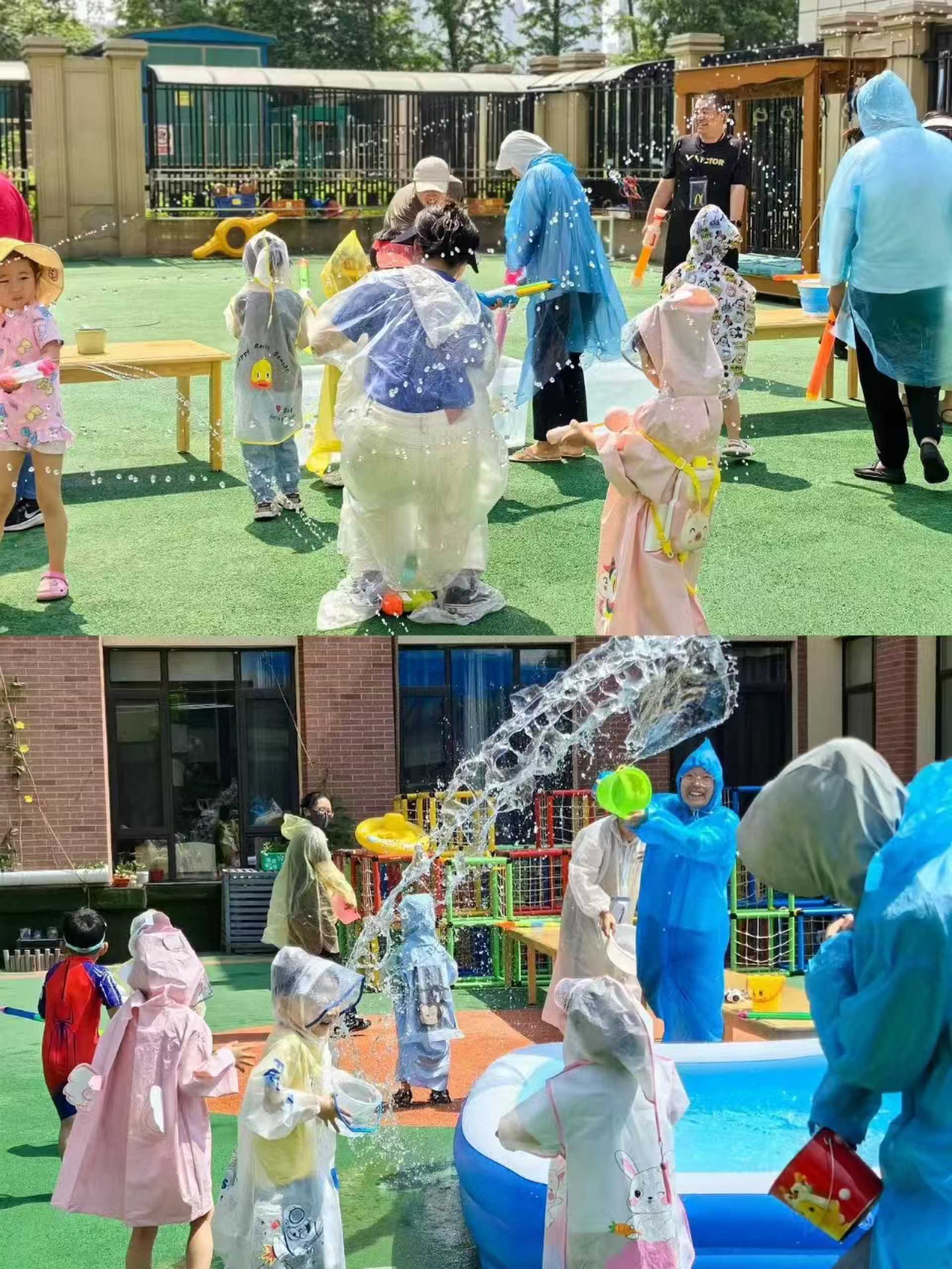 2.疯狂泼水:家长幼儿自备水桶及玩水工具可以寻找遮挡物护体同时找机会发起进攻。