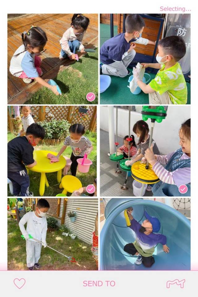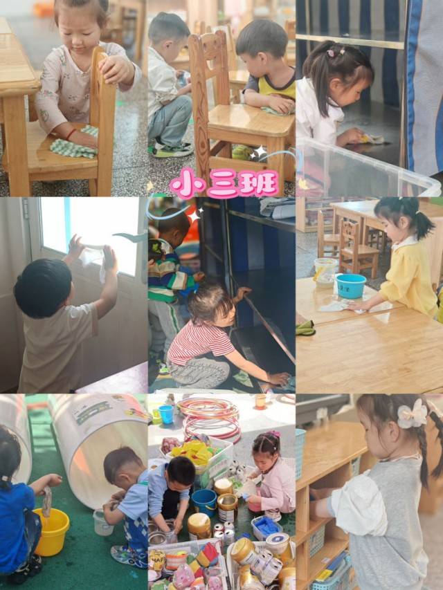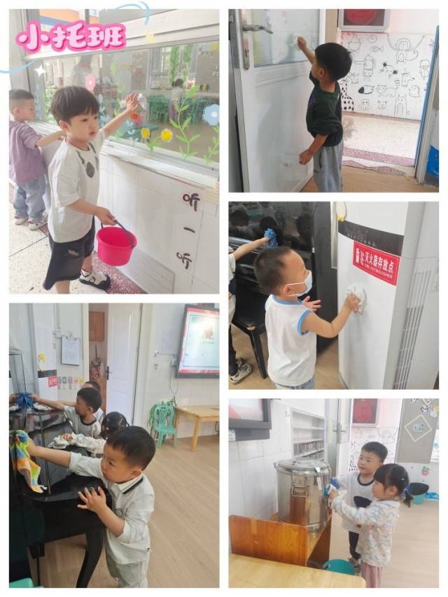 虽然年龄小,但担当“小小清洁员”这个角色可是毫不逊色,瞧!他们拿着小抹布和小扫帚,在老师的指导下认真地擦拭桌椅、清扫地面,虽然动作还稍显笨拙,但认真的模样十分可贵。