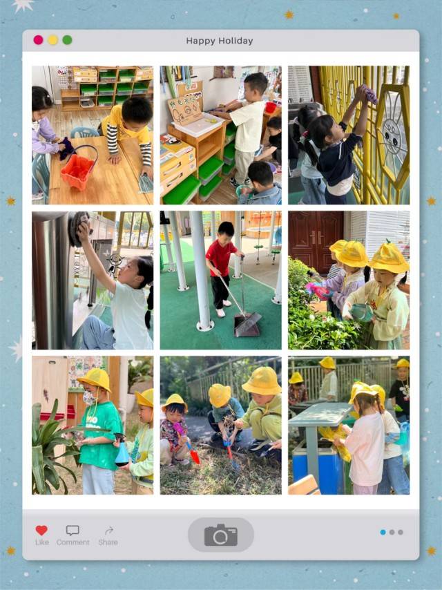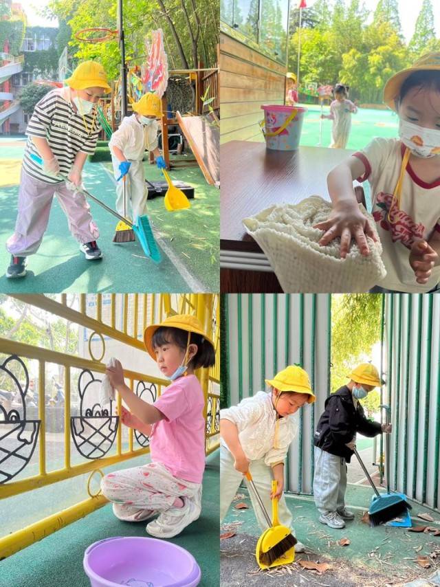 瞧!他们手持工具积极打扫,认真擦拭、用心整理的专注模样被定格成珍贵照片。
