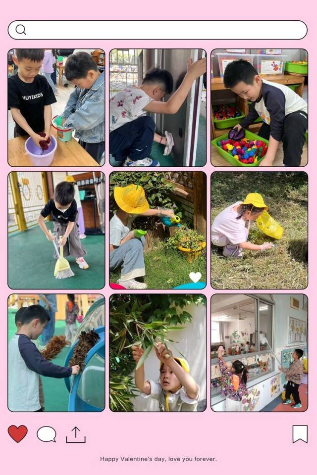 孩子们化身小小园丁,在园丁老师的指导下学习除草、浇水、修剪枝叶;穿上白大褂,跟随保健医生学习测量体温、检查口腔,守护健康;来到食堂,体验择菜、洗菜,感受美食制作的不易;小保安们在保安叔叔的带领下学习站岗、巡逻,守护幼儿园的安全;跟着保育老师整理床铺、打扫教室,体会保育工作的细致与辛苦。