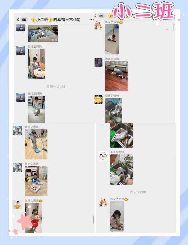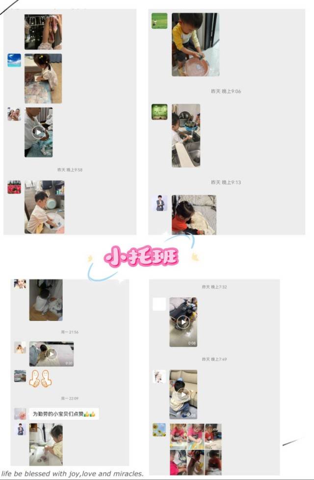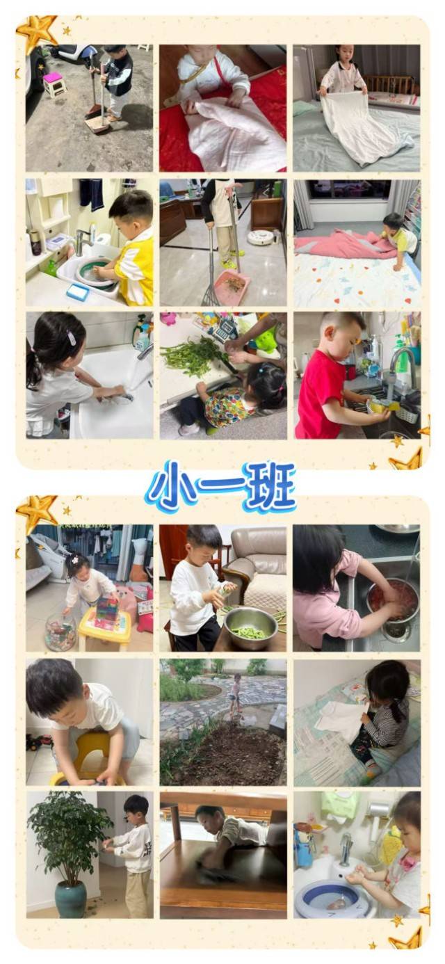 小班通过家园共育的方式,让劳动教育从幼儿园延伸到家庭。在家庭生活中,家长们引导幼儿在家参与简单的家务劳动,有的孩子帮忙扫地,有的孩子帮忙择菜,家长们及时给予鼓励与表扬,让孩子们感受到劳动带来的成就感。