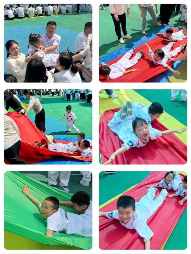 简单的彩色滑溜布也能玩出花样,小飞机出动啦,低空飞行,紧急传递,滑溜布起飞~