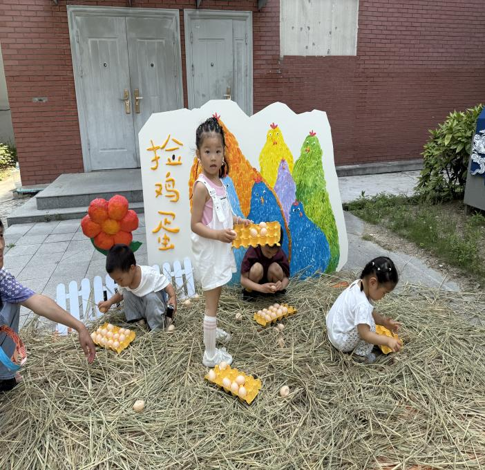 活动以“自然探索 + 端午习俗 + 亲子互动”为特色,将六一的童真与端午的古韵巧妙融合。活动伊始,“野孩子入场式”拉开序幕,孩子们顶着创意十足的趣味发型,在家长的陪同下活力入场,随后的亲子集体律动瞬间点燃现场气氛。在自然野趣游戏环节,孩子们化身“泥巴小匠人”,用泥巴捏出形态各异的泥塑造型;穿越麻绳与树干组成的障碍,化身小小考古学家拆解“恐龙化石”;还有面部彩绘、人体泡泡、捡鸡蛋等游戏,让孩子们尽情撒欢,释放无限活力。同时,传统文化的体验也热闹非凡。孩子们和家长一起动手编五彩绳、制作艾草锤,参与捡鸡蛋、画彩蛋、射五毒游戏,在趣味互动中感受端午习俗的独特魅力。活动最后,孩子们分享“今天最‘野’的事”与学到的端午知识,并领取打卡礼物。