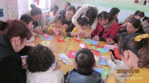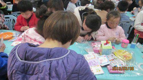早上七点多,妈妈们满怀喜悦的心情相约来到幼儿园,准备和孩子们一起庆祝自己的节日,8:40活动正式开始。首先,各年段的孩子们向妈妈们展示了精彩的早操表演,随之,各班级同时向家长们展示了丰富多彩的亲子活动。小班开展了“给妈妈的卡片”、 中班各班开展了“节日贺年卡”、大班开展了“礼物盒”“ 美丽的挂饰”亲子小制作活动,孩子们在妈妈的帮助下,用稚嫩的小手亲自为妈妈制作了节日礼物。当孩子们把做好的红花、礼物盒、美丽的挂饰送给妈妈和奶奶时,同时还送上一句:“妈妈(奶奶)您辛苦了,祝妈妈(奶奶)节日快乐!”孩子真情的话感动了许多的大人,看到孩子们真挚的情感表达,有的妈妈激动地流下了幸福的泪花。