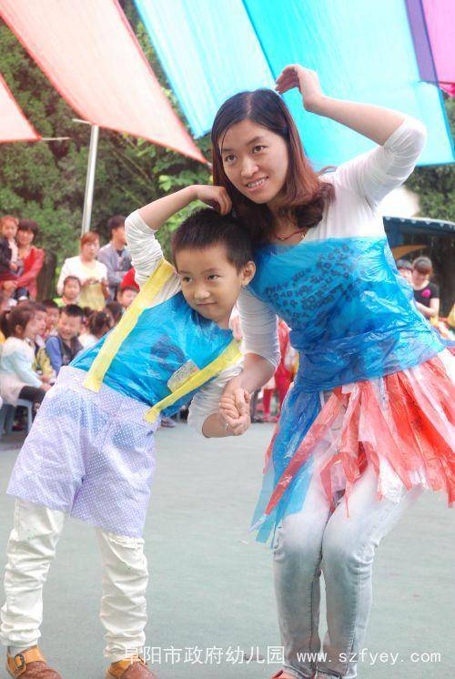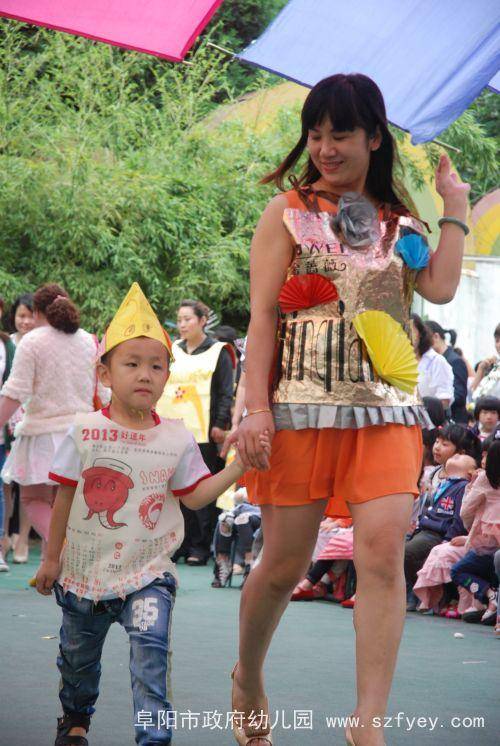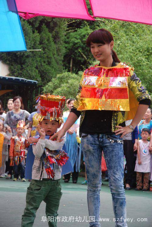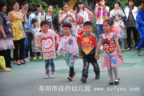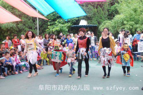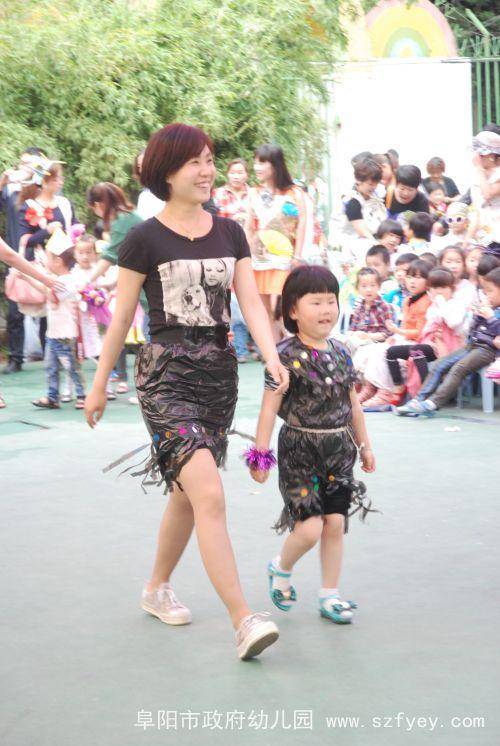 本次活动的服装是由孩子和家长一起,利用各种废旧材料亲手制作的。看,报纸制成了可爱的小西装,塑料袋做成了美丽的花裙子,光盘变成了闪亮的小帽子,苹果包装袋编成了时尚的网眼袜,小药瓶串成了晃动的小手链……小“模特”和大“模特”们穿着各种各样时尚、个性的服装,跟着动感的音乐,在T台上迈着自信的步伐,摆出各种可爱的造型,给我们带来了美的享受。 在欢快的音乐中,我们的活动接近了尾声。此次活动不仅培养了孩子的动手制作能力和表演能力,更唤起了孩子的环保意识。祝愿我们的孩子更健康,祝愿我们的世界更美丽!