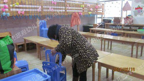 保育员在擦洗小椅子