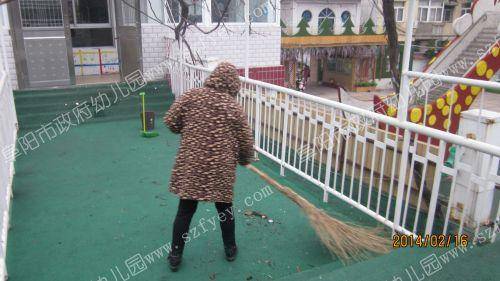 保育员在打扫大院