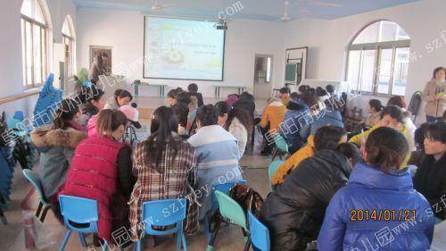 让参加国培老师汇报学习情况,其中舒玉文老师汇报了2013年9月份参加阜师院培训课程一《幼儿园一日活动组织与实施》,田芳老师谈2013年9月份至11月份参加合肥师范培训感悟,牛红梅园长谈2013年11月参加合肥师范培训收获。