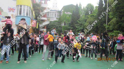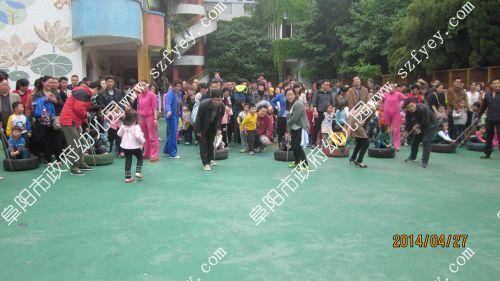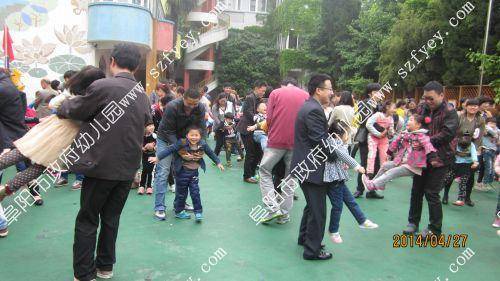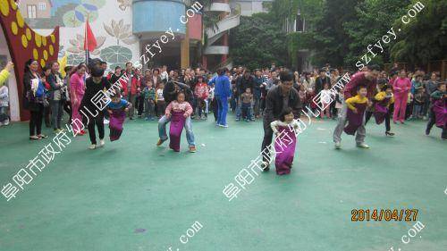 2014年4月27日上午8点40分,随着《运动员进行曲》的响起,永乐汇中班年级亲子趣味运动会徐徐拉开了序幕。家长和孩子们伴随《运动员进行曲》雄赳赳、气昂昂地进入运动场。园长简短的讲话后,家长和孩子们在主持人的带领现,进行了热身运动。接着,游戏和比赛项目一个接着一个,加油声、呐喊声、欢呼声沸腾了整个运动场。孩子和爸爸妈妈一起奋勇争先,努力拼搏,展示着更快、更高、更强的体育精神。