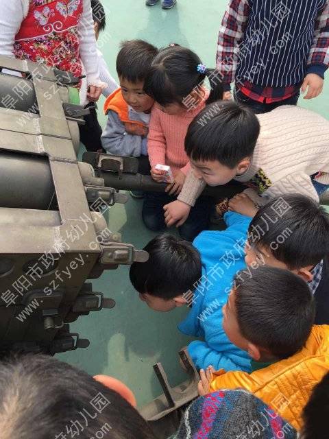 紧接着,解放军叔叔分别向孩子们介绍了现代化战略装备的名称、使用方法、用途等,孩子们睁着好奇的大眼睛,仔细观察,还不时地用小手去感受,甭提多开心了!