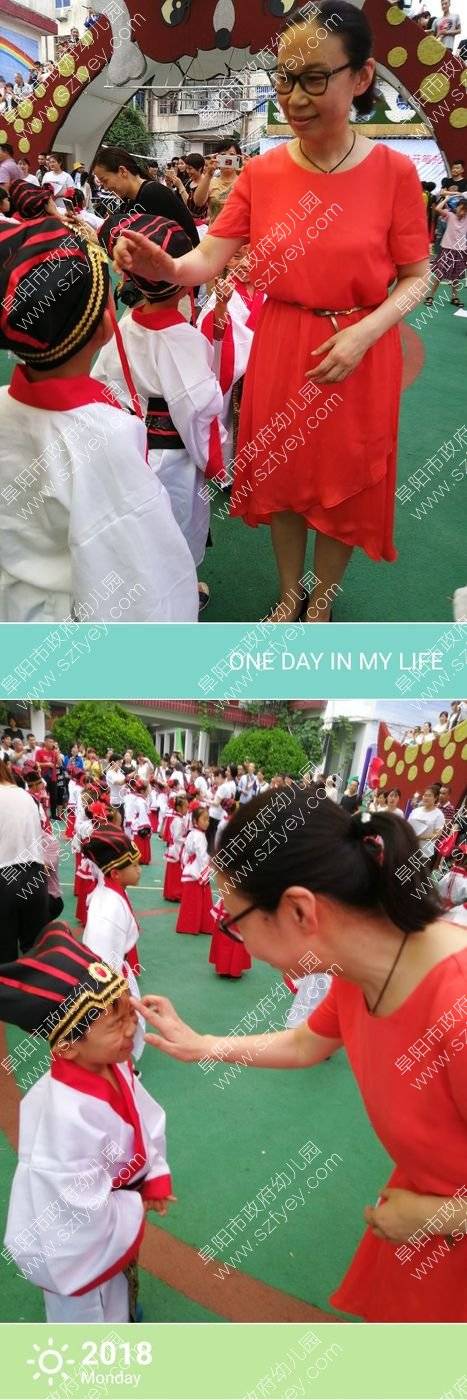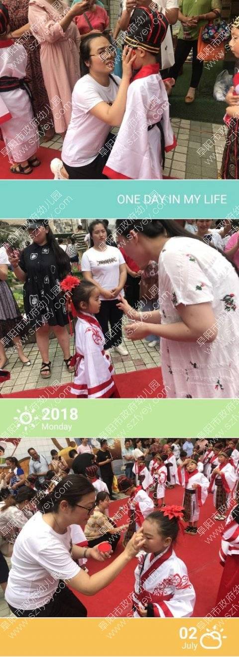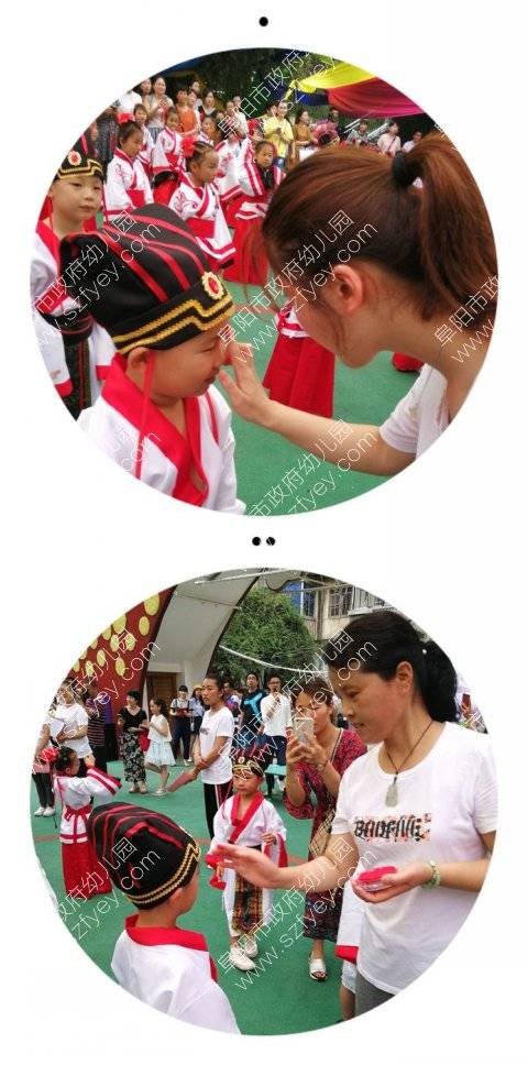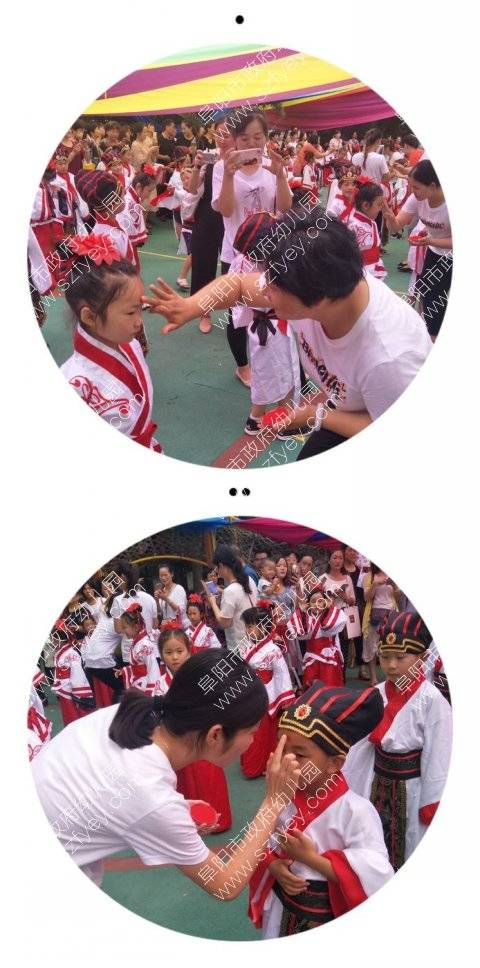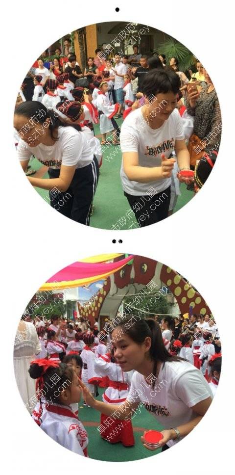 每位老师给孩子们额头点上红痣,祝愿孩子更加聪慧。