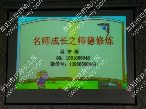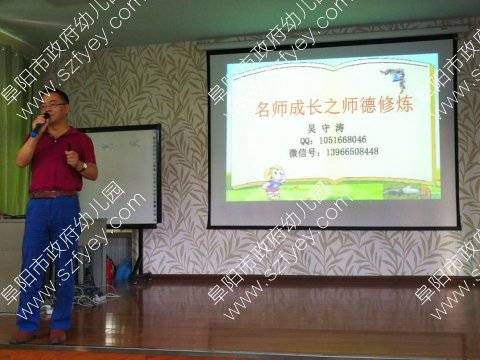 活动开展前,刘园长向各位前来参加培训的教师介绍了吴守涛老师。吴老师是特级教师,全国骨干班主任,中学高级教师,全国课改先进个人,全国课改先进工作者,亳州师专兼职指导教师,市继续教育首席主讲教师。就“师德”、“校本教研”、“教师专业成长”、“学习论与课堂教学”、“班级文化建设”等话题给教师讲座培训300余场。