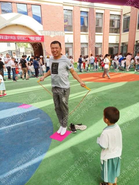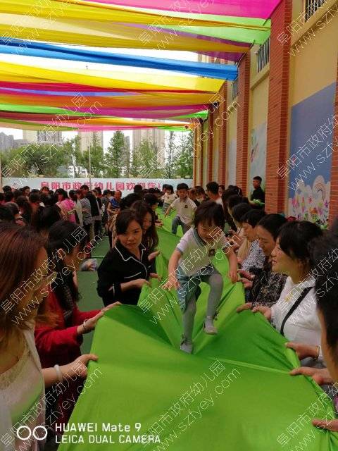 上午9:00,伴随着运动员进行曲的音乐,各班孩子及其家长们在老师的带领下,迈着整齐而又轻快的步伐隆重入场。永乐汇刘琴园长首先为本次“六一”亲子活动致开幕词,刘园长热情洋溢的发言赢得了全场热烈持久的掌声。接着,亲子互动热身“举高高”“挠痒痒”、“斗牛比赛”等活动开始了,孩子们和家长们亲密而又充满情趣的互动,立刻使整个现场变成了一片欢乐的海洋。瞧,海绵棒化身为拔河比赛的绳子,孩子们和家长玩儿的不亦乐乎;滑溜布变身为彩色的海洋,孩子们在五彩缤纷的“海洋里”“冲浪大冒险”;“穿越火线”、“勇士联赛”等一个个欢快刺激的场面更是让整场活动高潮迭起,让人目不暇接,孩子们和家长都尽情的享受着亲子活动带来的欢乐时光!