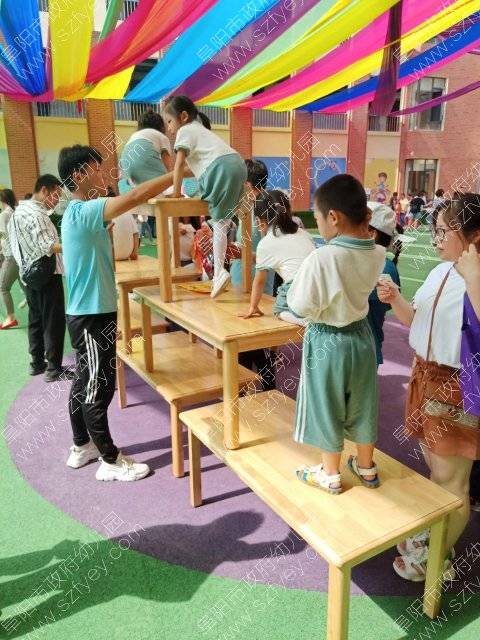 瞧,老师们为孩子们准备了丰富多彩的闯关游戏。《跳绳达人》、《指手画脚》《命中注定》、《天旋地转》、《铁甲战车》、《比翼双飞》、《疯狂袋鼠》、《踢毽子》、《眼疾手快》……《超级大肺王》、《你是我的》《命中注定》、《盲人指路》、《三人四足》、《勇往直前》、《情比金坚》、《心有灵犀》、《大显身手》、《亲密无间》……每一个游戏关卡都是根据中班年龄段幼儿的年龄特点而创设的,如“眼疾手快”游戏中家长和孩子相距2米,孩子丢球,家长用吸盘接球,锻炼了幼儿手眼协调的能力;“勇攀高峰”游戏,使幼儿在游戏的过程中锻炼运动协调的能力培养了幼儿坚强勇敢、不怕困难的学习品质。