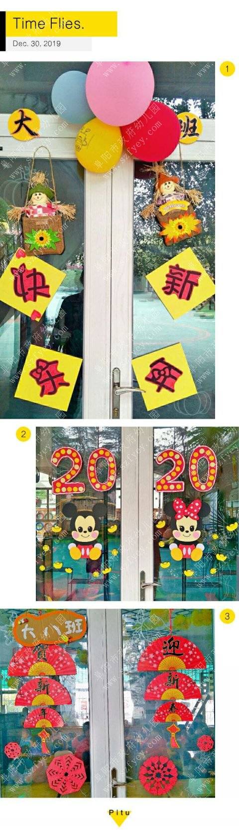 新年新气象,新年未始,每个班级的门里门外窗前屋顶早已被喜庆的红色装扮一新……