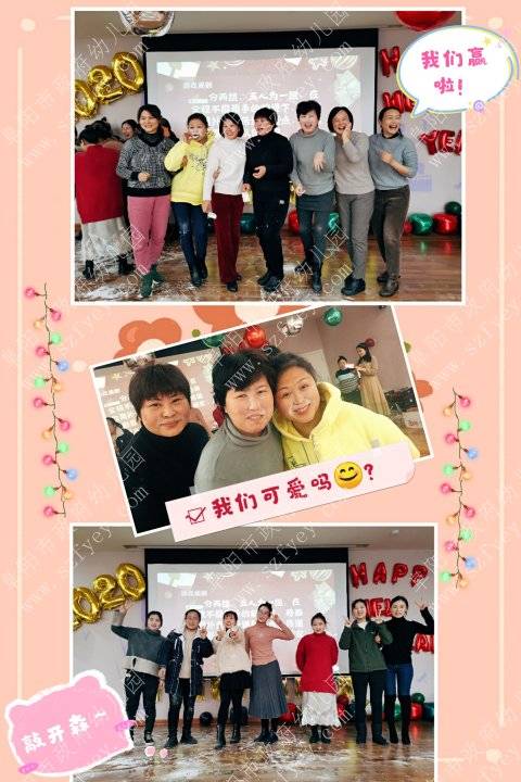 联欢会的第一个游戏便在大家积极参与中开始,“气球大作战”,我们园有经验的中青年教师一马当先,赢得头彩。