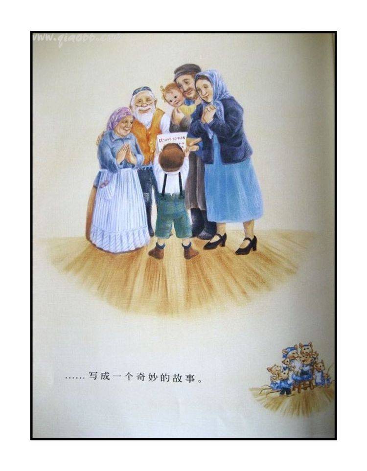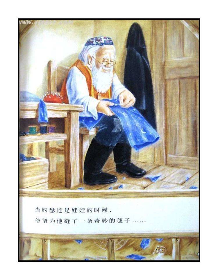 “嗯......”爷爷拿起剪刀开始喀吱喀吱、喀吱地剪,再用针飞快地缝进、缝出、缝进、缝出。充满智慧的爷爷把孙子心爱的破毯子变成外套、背心、领带、手帕、纽扣……最后,小约翰也学会了像爷爷一样物尽其用。