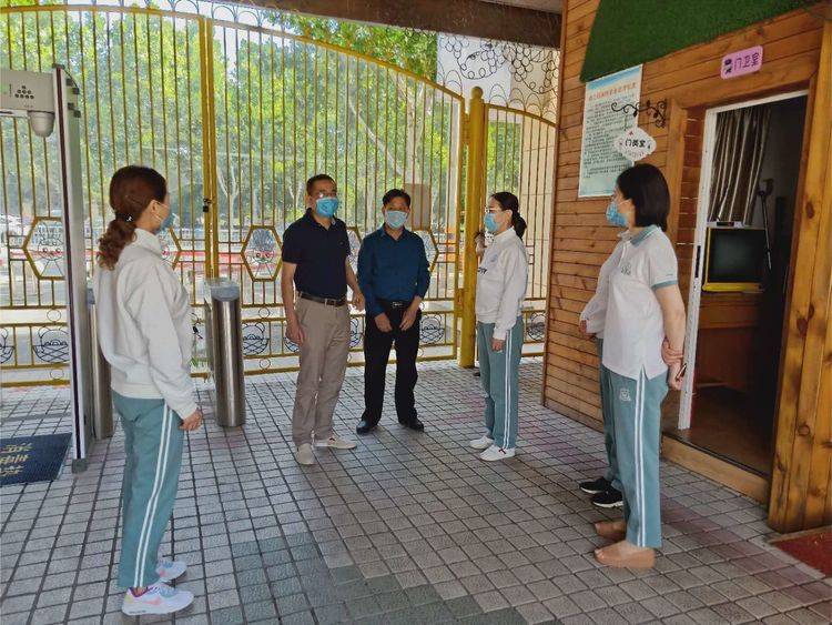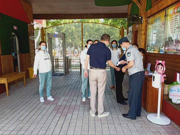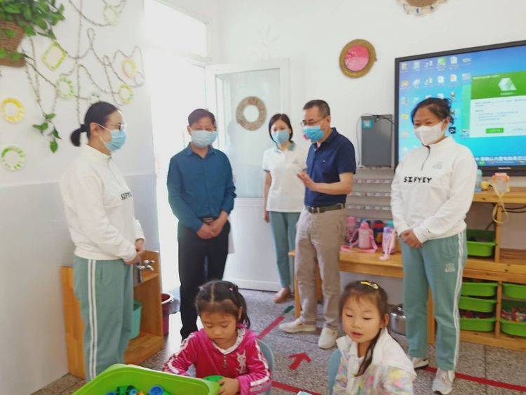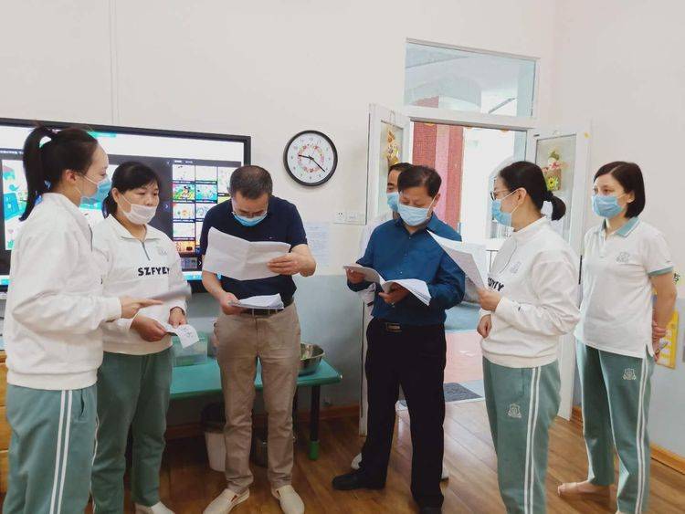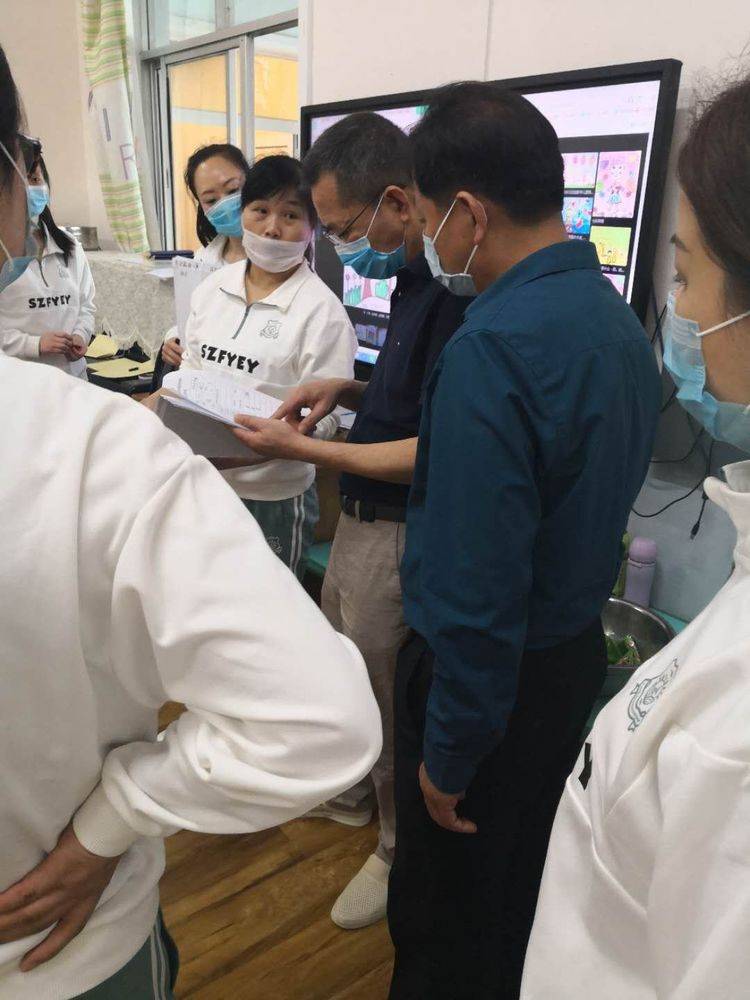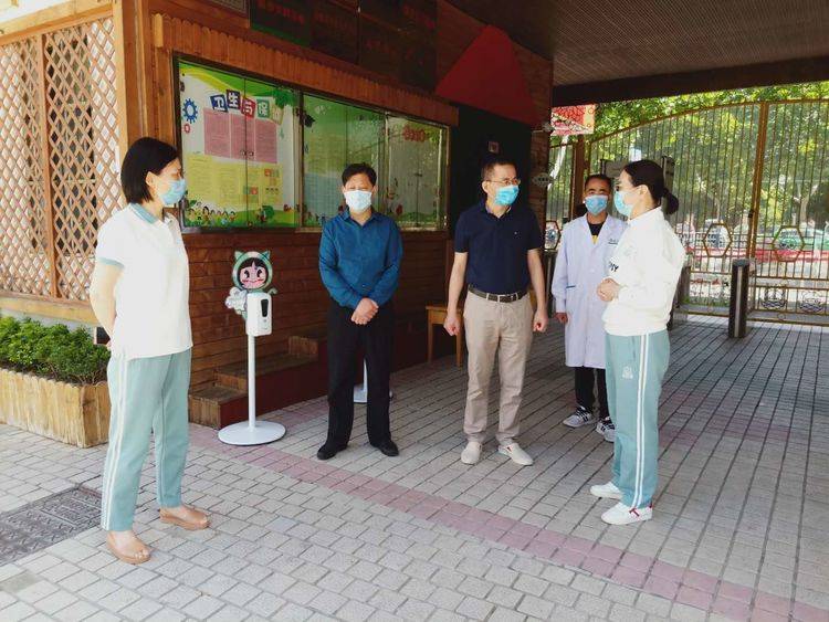 市教育局副局长王伟和市教育局基教科科长吕伟莅临我园检查指导开学工作,从门口的体温检测,到幼儿活动室,各项消毒措施进行查看,对我园的复课工作给予了高度的评价。