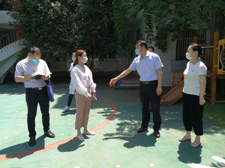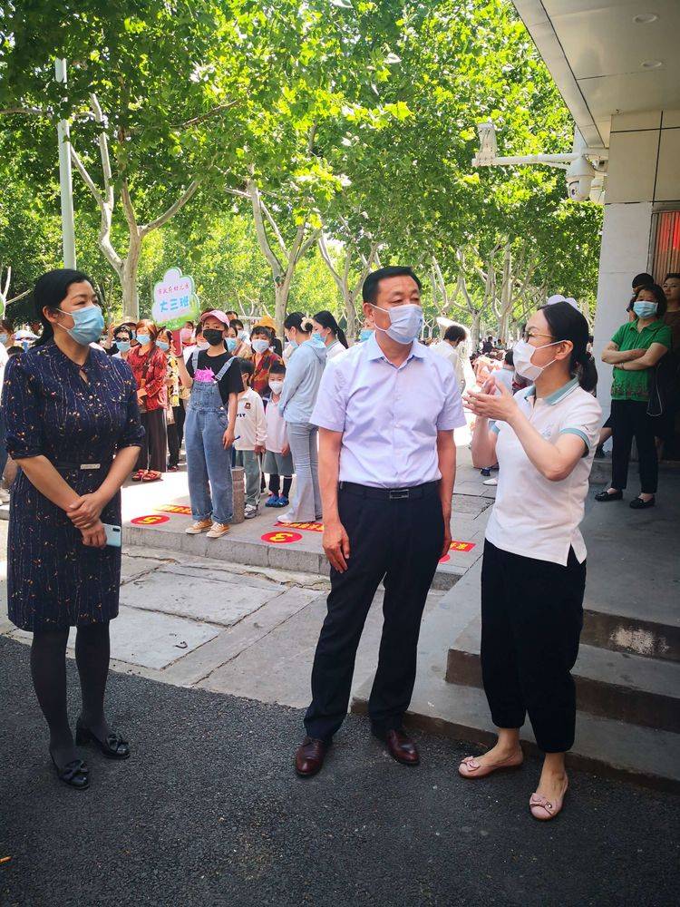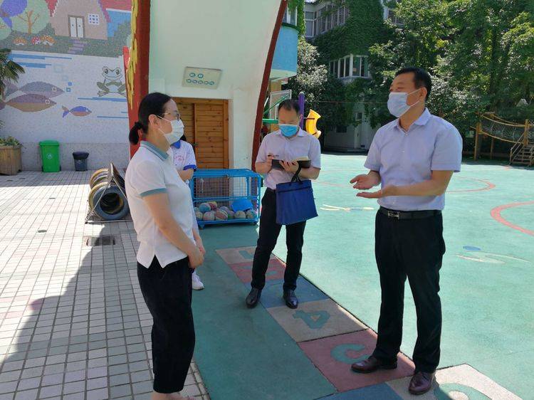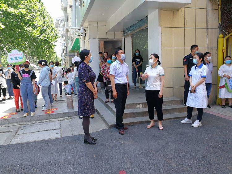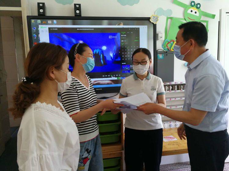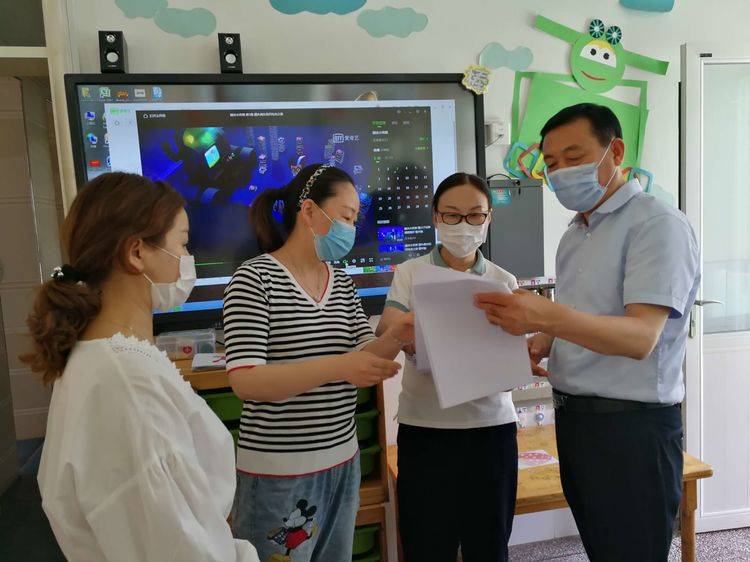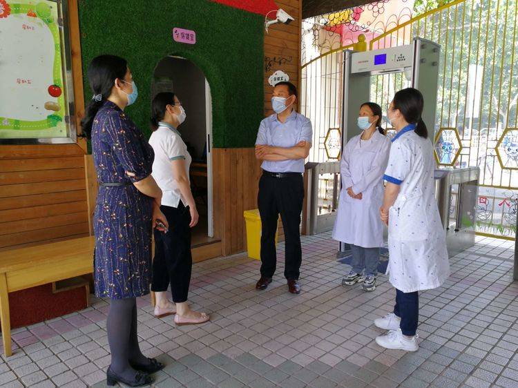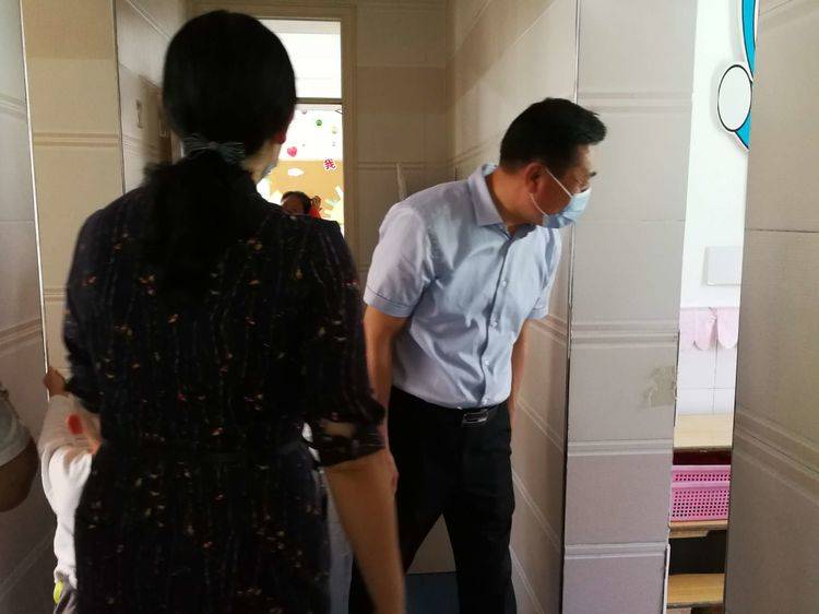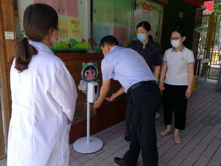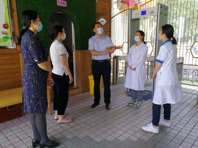 首先,刁卫华局长主动接受体温检测,并亲自察看幼儿园大门口的消毒防疫设施运转情况,仔细听取了刘园长关于疫情期间幼儿园复学工作相关汇报。
