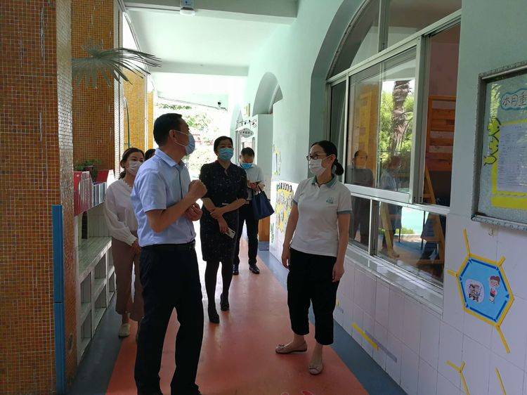 随后,刁局长来到幼儿班级看望老师和孩子们,查看了教室、盥洗室等重点区域是否整洁卫生、通风透气,是否配备消毒物资等;并详细询问了师生生活学习和健康情况。