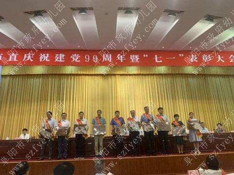 2020年7月1日上午,在阜阳市政府召开的“市直庆祝建党99周年暨七一表彰大会”上,表彰了在2019年工作突出的优秀党员和党组织,其中,永乐汇党支部在2019党务工作中表现突出,荣获“四星级标准化建设党组织”荣誉称号,我园郝敏老师被评为优秀党务工作者。