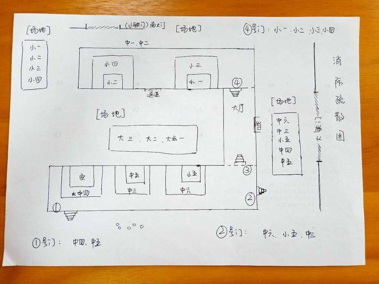 为了确保这次大型集体活动的顺利进行,我园提前举行了消防安全专题研讨会,大家集思广益,最终敲定了适合本园的消防演练方案并规划出了消防疏散图,以确保每个师生都能在最短的时间内逃离“火场”到达安全场地。