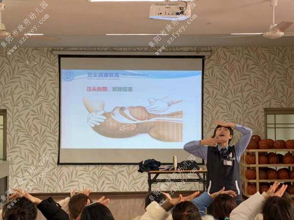 培训中,急救专家现场演示急救步骤,讲解了常见的吞食异物、高热惊厥、外伤急救、幼儿烫伤、创伤出血、心跳骤停等意外伤害的处理措施以及幼儿、成人的心肺复苏急救方法等知识。