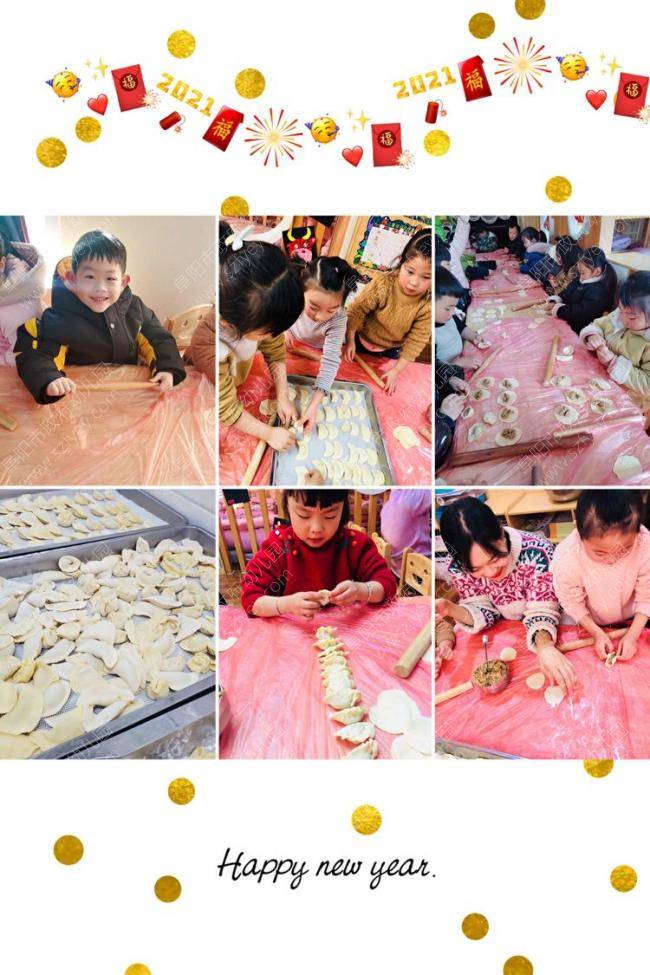 小朋友们带来了家里的擀面杖,从和面、醒面、切块到擀皮、放馅、合口,每一个步骤都是亲自完成的,小小的身体充满了大大的能量,整整两大桶饺子,看我们把自己喂得饱饱的。