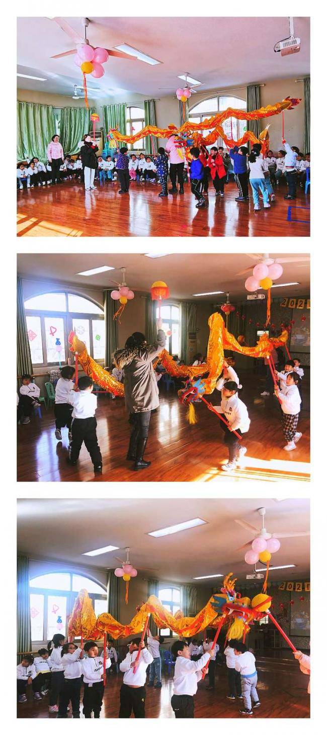 舞龙俗称玩龙灯,起源于中国汉族传统民俗文化活动,源自古人对龙的崇拜,每逢喜庆节日,人们都会以舞龙的方式来祈求平安和丰收。在这个举国欢庆的日子里,大班的孩子们“飞”腾跳跃,用“舞龙”来欢庆新年,表达心中最美好的愿望!