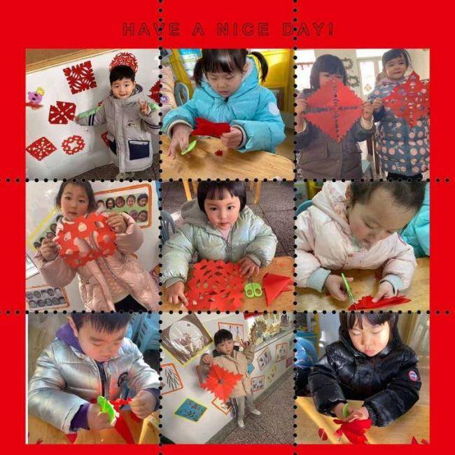 “剪窗花,把我们的新年打扮的漂漂亮亮。”