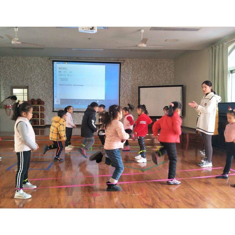 艺术领域,大班唐瑶瑶老师《跳花绳》,把民间游戏有机融合在音乐之中,孩子们享受快乐的同时,领略到传统游戏的魅力。