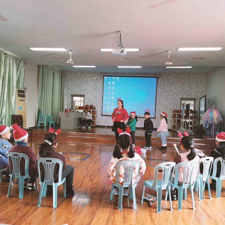 张莉莎老师带来《鲁道夫的鹿鼻子》,孩子们跟随音乐和圣诞老人、驯鹿一起去送礼物、过圣诞,真开心!