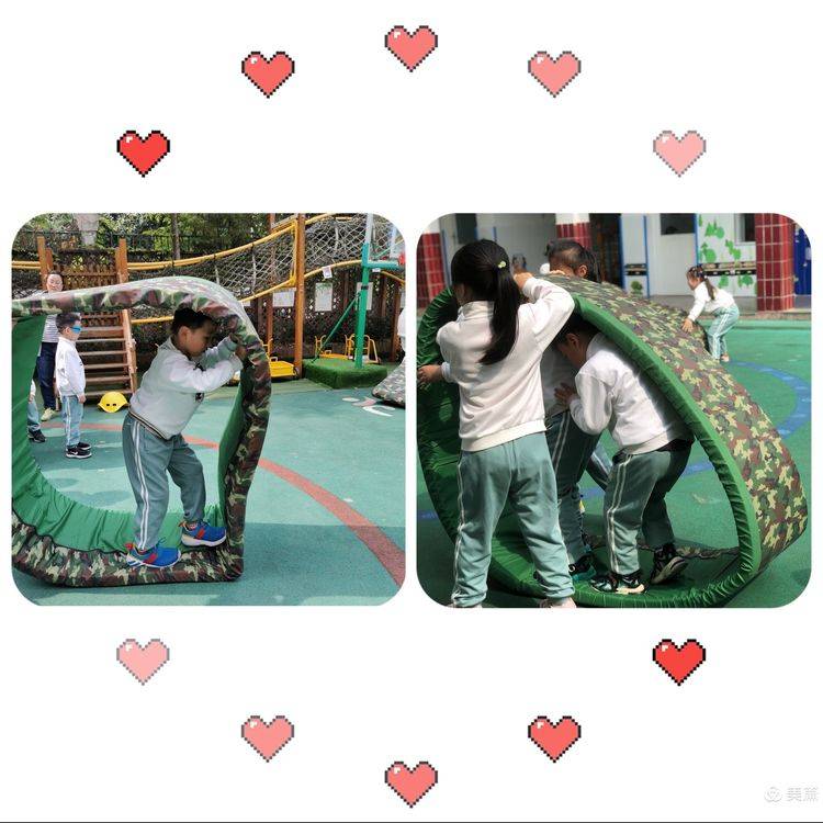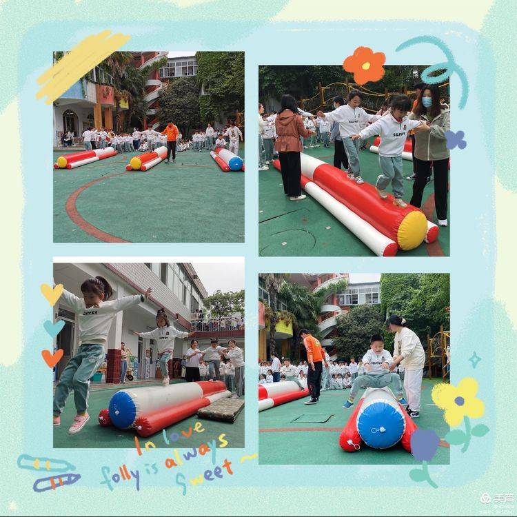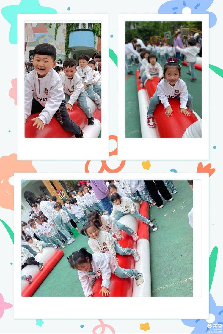 ?♀️比赛正式开始,小班小朋友们进行了“超级特工”“小熊过桥”“赶球入洞”等有趣的项目,看,他们多开心!