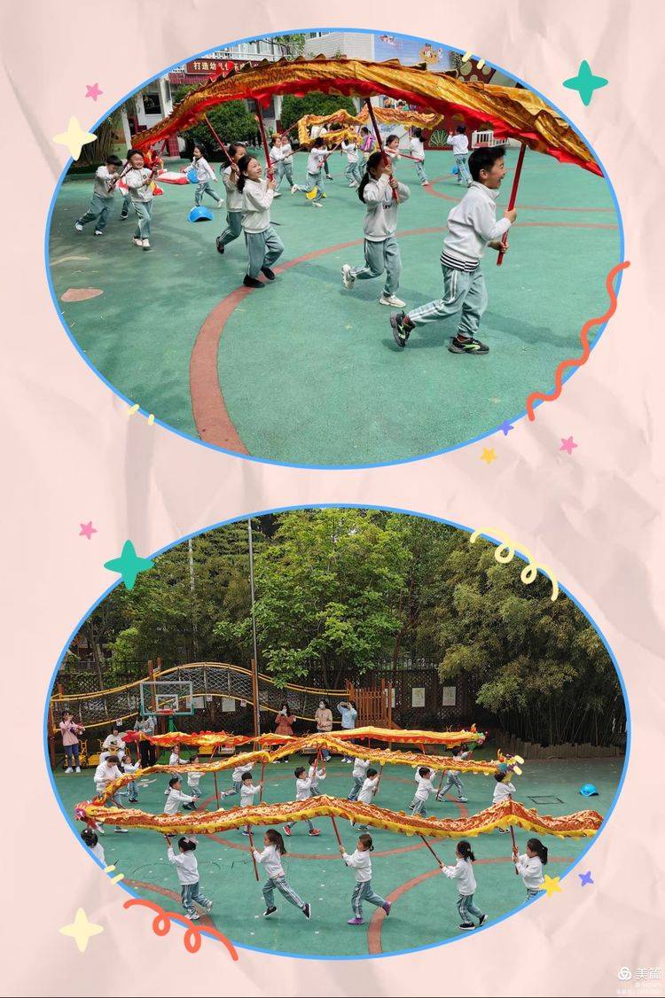 ?铿锵有力、热闹非凡的锣鼓阵阵响起,一条条锦色长龙在会场上翻腾起舞,带动了运动会的欢腾。他们穿着整齐的服装,手舞长龙、蛟龙出海、穿梭前进、龙游四海,腾飞云霄,不是真龙胜似真龙。他们时而奔腾跳跃,时而穿梭如飞,展现出良好的合作精神!