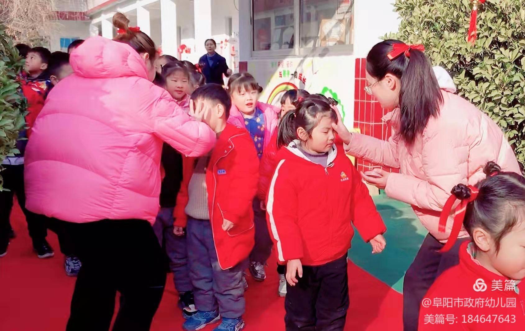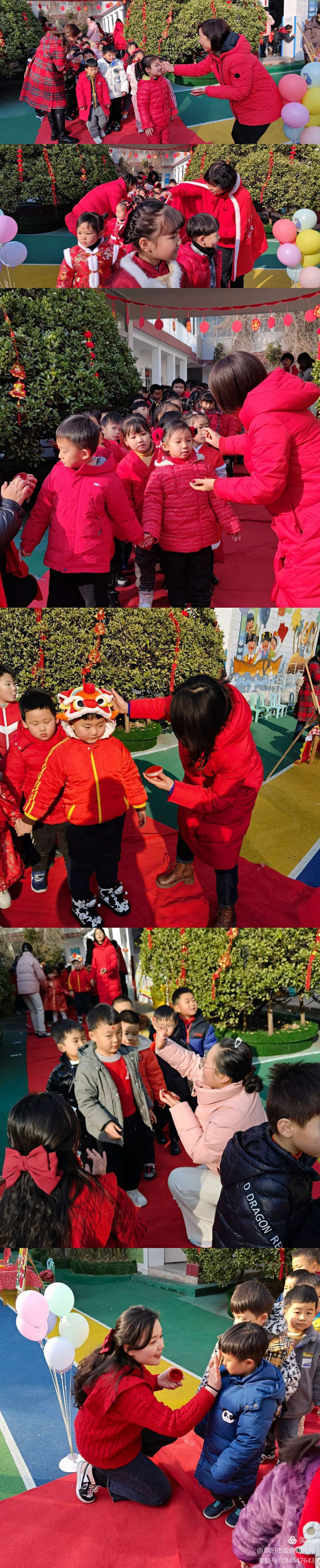 瞧,小朋友们兴高采烈地踩着红地毯入场啦!?老师妈妈为我们点上了“吉祥点”,希望我们都能平安健康,幸福快乐的长大。