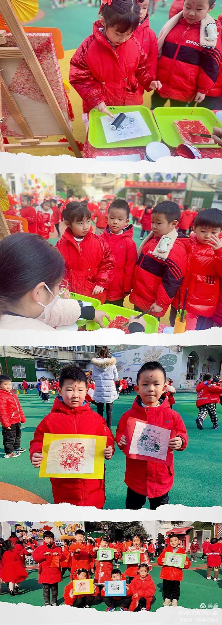 看,孩子们正在共同合作,剪彩纸、做灯笼?、写福字、捏面人、版画拓印,忙的不亦乐乎……怀揣着对新年的美好期待,感受着年俗年味。