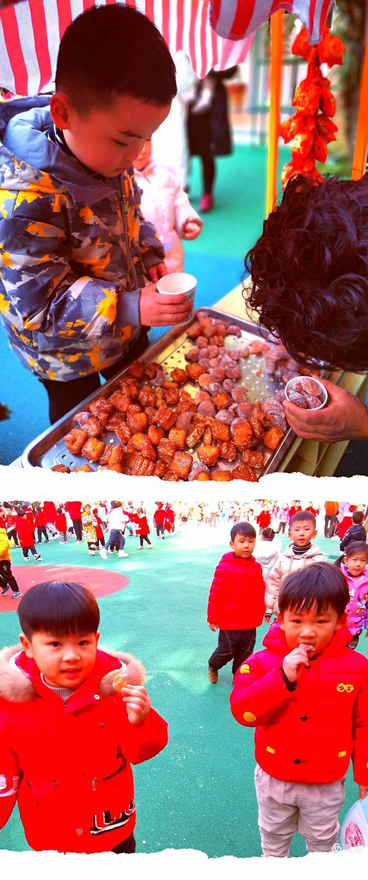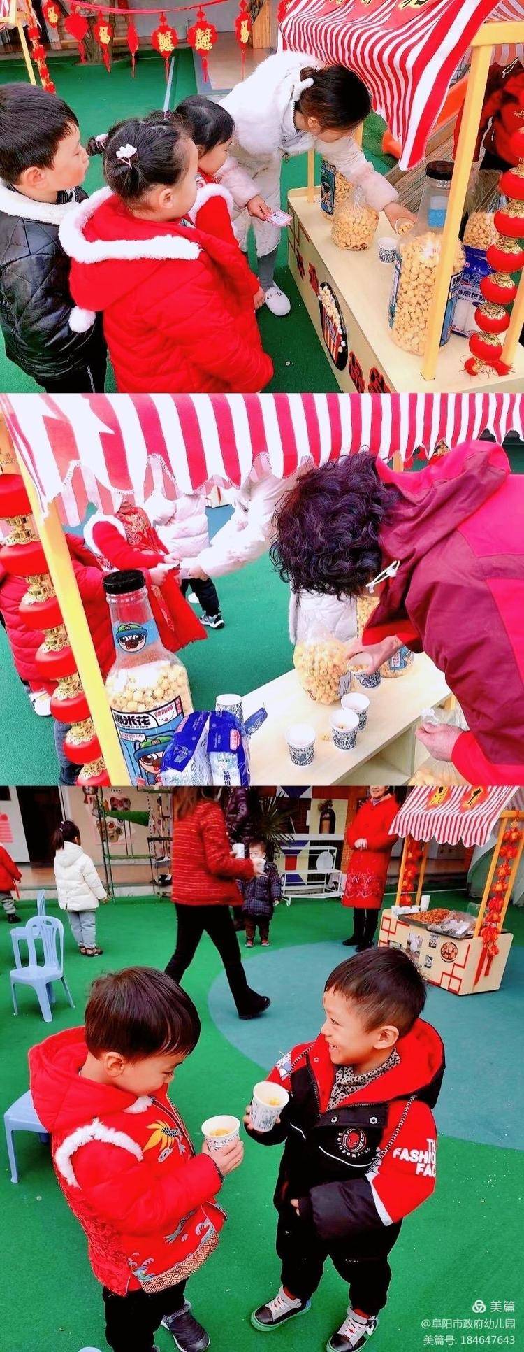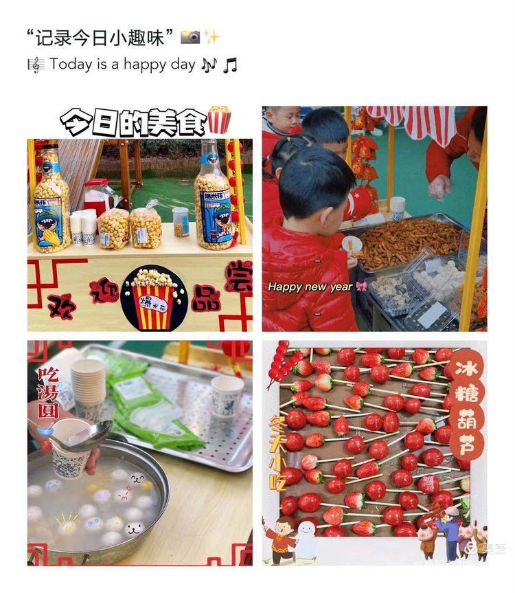 汤圆、爆米花、冰糖葫芦、果子,我们的小铺营业啦!小朋友们拿着做游戏获得的美食兑换券,可以向老师兑换美味品尝啦。??