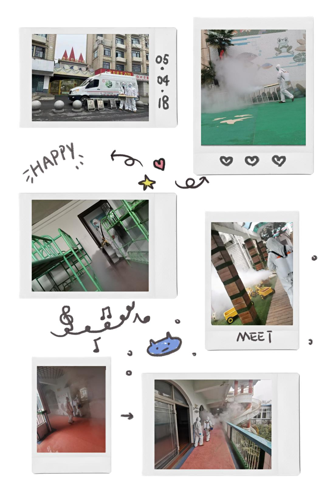 消杀队员身着专业工作服,配备专业的消杀设备,运用专业工具,按照规范的消毒步骤:调配消毒液,身背消毒水桶,拿着喷枪,分组开展消杀工作。对各班活动室、各功能室、会议室、走廊、操场、大型玩具等公共场所逐一实施消杀,重点对楼道、楼梯扶手、洗手间等关键区域实施密集消毒,做到不留死角,筑牢幼儿园卫生防护墙,全面做好疫情防控工作。